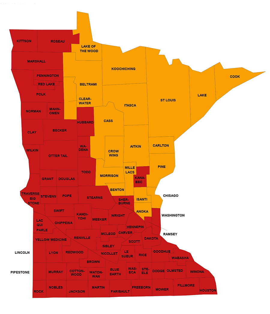 Counties have a predicted average indoor radon screening level less than 2 pCi/L